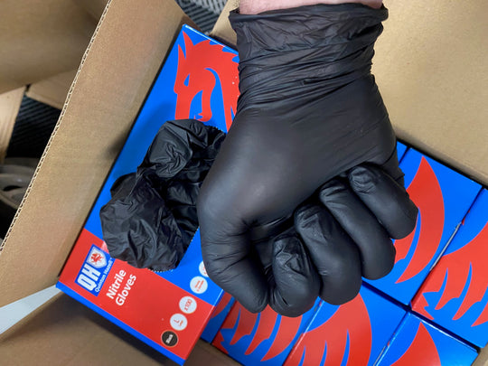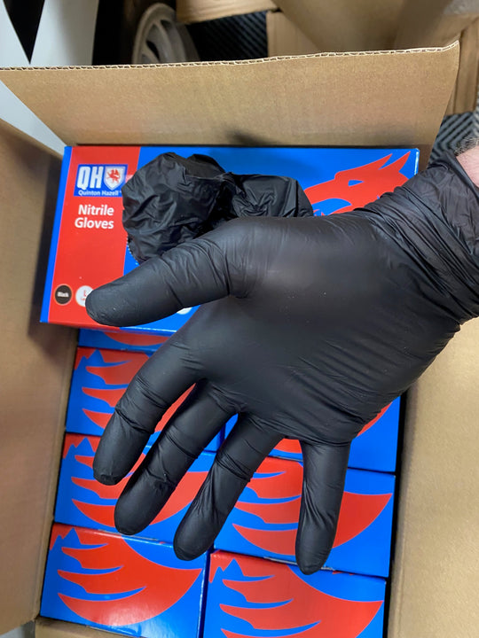 1 box of Quinton Hazell large black nitrile gloves (Box contains 100 single gloves)